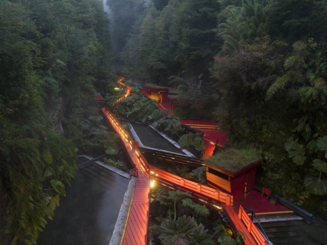 Las Termas Geométricas representan una fusión perfecta entre diseño arquitectónico y naturaleza, ofreciendo a sus visitantes una experiencia de relajación inigualable en medio de los bosques nativos del sur de Chile.