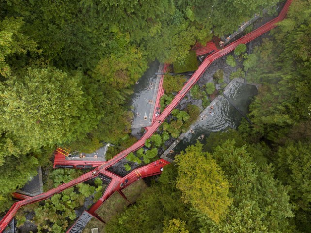 - 18 Piscinas Termales: Distribuidas a lo largo del cañón, las piscinas varían en tamaño y profundidad, ofreciendo diferentes experiencias de inmersión. Construidas con piedra local, se mimetizan con el paisaje, creando un ambiente de serenidad y armonía.