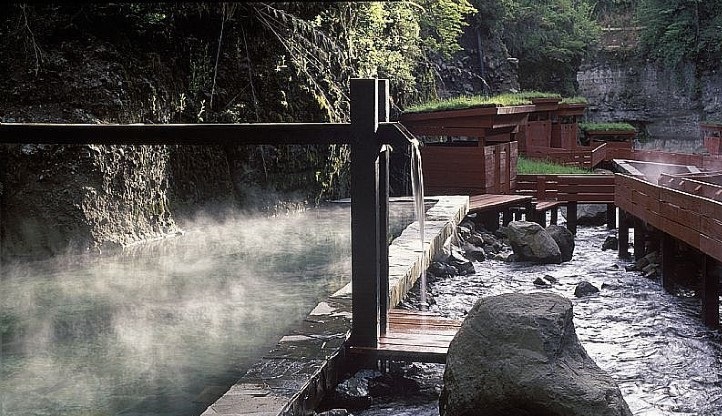 Termas Geométricas se encuentran en el kilómetro 16 del camino que une Coñaripe con Pucón, en el corazón del Parque Nacional Villarrica, Región de Los Ríos.